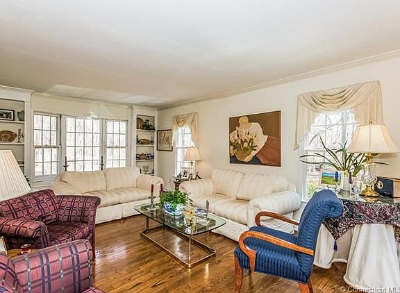 A beautiful cul de sac neighborhood provides the perfect setting for this lovely, classic 4BR colonial conveniently located just minutes to town and highway. Sunfilled rooms flooded with natural light, gracious open floor plan, gleaming wood floors on two levels, recently updated baths, crown molding - just a few of the many fine features that make this home so special. The front to back LR features a bay window and custom built-ins, formal DR opens to bright eat-in kitchen with greenhouse window. The spacious FR flows from the kitchen and features a stone fireplace wall, wide plank wood floors and french doors to the office, or den or sunroom and access to the oversized deck. Upstairs the MBR has a large closet and newly updated bath, three additional bedrooms and an updated family bath. Fabulous offering in a sought after area with great space, character and detail. A wonderful home for everyday living and entertaining. Don't miss it!