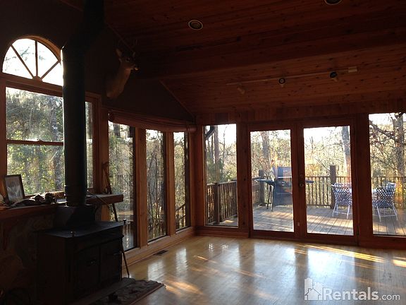 This house has a beautiful large living room with glass windows to enjoy your view of woods, mountains and quietness. Located just 10 minutes from Travelers Rest this house is on over 2 acres and is peaceful.