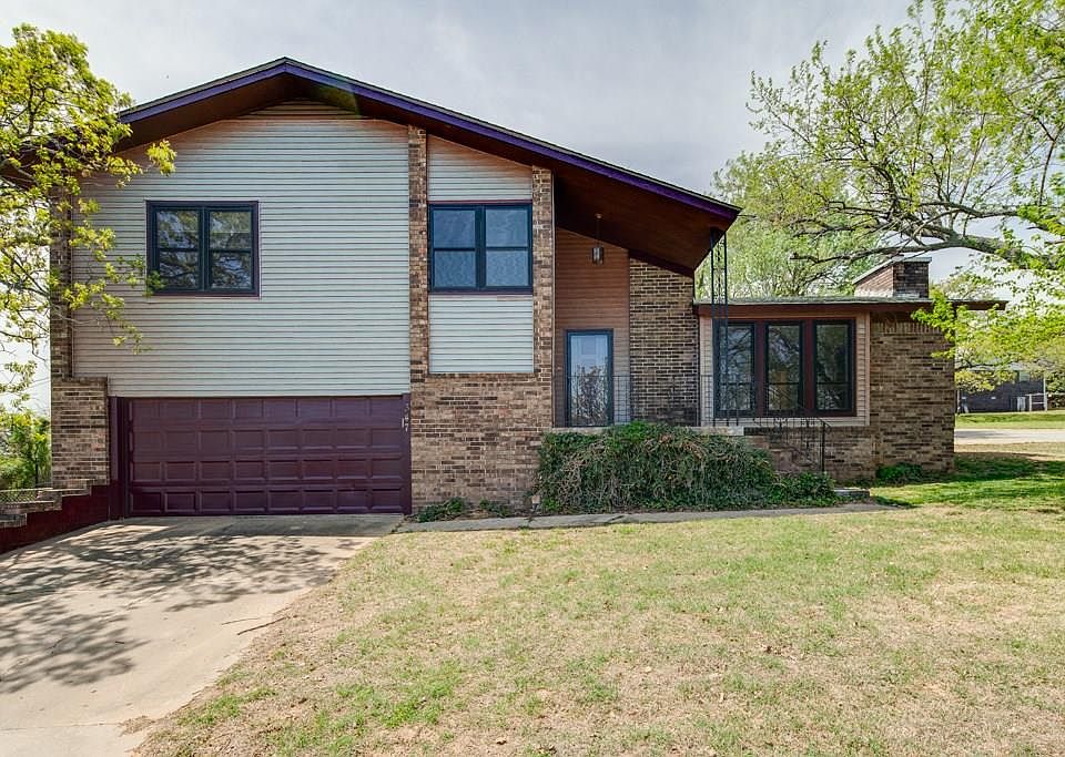 Wonderfully unique 70s home with a view! Park-like backyard with fountain pond, large brick patio, flower gardens. NEW roof & HVAC. Updated windows, tankless water heater. Bonus room (with its own exterior door) could easily be 5th (or master) bedroom. bamboo wood floors in LR. Lots of custom kitchen cabinets. Solid oak stairs. Vintage rock floor foyer.