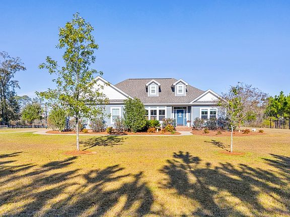 This immaculate 9.13ac property includes custom-built home w/ 2 ac planted pines, 1.5ac pond stocked w/ bass, bream, and carp, duck house w/ nesting box, 12x14 ft utility shed housing well w/ built-in shelving, water, interior/exterior lighting, fenced pasture containing chicken coop w/ brooder and goat/rabbit barn w/ electricity + water abutting a fenced, irrigated fruit orchard + large, irrigated garden area. Fruit orchard includes gold + purple scuppernongs, three orange trees + three peach trees (two varieties each), three satsuma, two pear, and one lemon, one fig bush, and four thorn-less blackberry bushes w/ a few open drip-irrigated spots available. Home includes 20KW Generac whole-house stand-by generator; Pentair whole-house water softener system, Rinnai tankless gas water heater; single whole-house HEPA filter; air conditioner recently replaced in 2021; cellular blinds throughout; gas fireplace in living room; kitchen includes gas, five-burner cooktop w/ vent-air hood as well as double ovens and custom-built hickory cabinets containing double appliance garage + pull-out drawers in lower cabinets; Kichler light fixtures and fans throughout home; time-delayed whisper-quiet Panasonic bath exhaust fans and Kohler plumbing in lavatories; notably, this home is equipped w/ innumerable electrical upgrades including Elk security system; structured wiring can in place for hardwired internet and security; pre-wired switching for landscape lighting; dormer lights w/ receptacles; three-way switching and dimmable recessed lighting throughout home; upper/lower cabinet lighting in kitchen; dimmable tray lighting in dining room; dimmable tray lighting and electric blinds in master bedroom; color-changing, dimmable, double tray lighting in living room equipped with 7.1 surround sound + two outdoor patio speakers. Additional 12.78ac abutting western property border also available. Deer and turkey commonly spotted on the land which includes cultivation land and hardwoods.