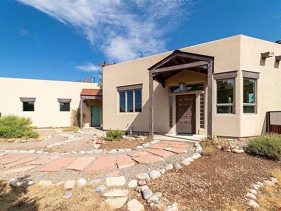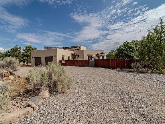 Discover the perfect balance of Southwest character and modern design in this stunning home, set on 13 private acres within the coveted Deer Island Preserve. Just minutes from town yet worlds away in feel, this property offers access to the Animas River, a shared pond with a sandy beach, and unmatched privacy surrounded by nature. Every detail of this home has been thoughtfully curated. Heated stained concrete floors and expansive windows fill the interior with warmth and natural light, while the open-concept kitchen is truly the heart of the home. With granite counters, a butler’s pantry, a wine fridge, and a layout built for entertaining, it flows seamlessly into dining and living spaces that invite relaxation. One living room frames big-sky views through picture windows and features a cozy corner wood stove, while the other opens to a private patio designed for evenings under the stars. The primary suite on the main level is a retreat of its own, with a spa-inspired tiled shower and a generous walk-in closet. A second bedroom and full bath complete the downstairs area, while upstairs offers even more possibilities: a guest suite with a steam shower, plus a flexible open room that can serve as an office, workout space, or media room. Step onto the rooftop deck for sweeping southern views and nightly sunsets. Recent updates bring comfort and peace of mind, including a new boiler, water softener, LED lighting, speaker system, alarm with night vision, heated garage floor, and much more. Sustainability is built in, too, with a solar/thermal system powered by five panels on the roof and 18 panels on the shed, which help offset utilities. The garage has a new Tesla charger. Outdoors, you’ll find rock-lined walking paths, desert-friendly landscaping, and gardens framed by native trees. The shared pond is ideal for fishing, swimming, or paddleboarding, complete with a comprehensive sprinkler system for irrigation. To make this offering even more remarkable, the property comes with an assumable VA loan at just 2.9% interest—a rare opportunity in today’s market.