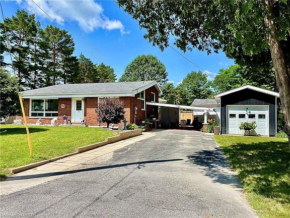 Immaculate and unique three bedroom two bath brick home on large lot with inground pool, carport and single car garage. This one owner home has been loved and cared for over the decades, pride of ownership shows throughout the entire property. Upon entering you are greeted by an open living space with a vaulted ceiling and an office or bedroom off to the side. The house, splits and upstairs you'll find two large rooms and a four piece bathroom with cheater ensuite. On the lower level is your open concept, kitchen, dining and family room at the back of the house. You will find a generous size sunroom with half bath, large mudroom and access to the backyard to finish off the house there is a family room and large basement hosting laundry Utility in large storage area, the highlights continue with the pool having been redone in 2016 liner, pipes, filter was done in 2021, the pump in 2020, pool blanket 2021, new interlock work done and shop door 2022, lower back deck redone 2020, (full list of upgrades available) boasting a beautifully landscaped backyard with inground pool perfect for entertaining, get some shade and relax on your covered back deck you may just want to staycation! Close to downtown and within walking distance to all amenities Sturgeon Falls has to offer!