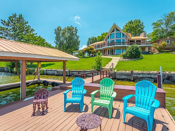Welcome to beautiful Watts Bar Lake in Spring City! Located at the end of a cul-de-sac, this one owner custom home has one of the most incredible views on the lake with 188 feet of water frontage and a gently sloping landscape to the water. Open to the Piney River and to the main channel, this property is a wonderful retreat. Enter the home and feel the warmth of the beautiful pine paneling from floor to ceiling. Bask in the panoramic views from the great room which opens to a large dining room. The kitchen and breakfast room boast hardwood floors and stainless appliances. Relax in the main level owner's suite which opens to the deck and more captivating water views. Family and friends will enjoy their own private spaces in the loft bedroom or in the basement bedroom with a full bathroom. The basement offers easy entry from the lake and has a bar ready for snacks and beverages. The laundry and another space offer very accessible and ample storage. Step out from the lower patio and stroll down the stone path to the water. The stationary dock accommodates an electric boat lift and large sun deck for relaxing, fishing, or just watching the boats go by. Improve your everyday life or enjoy your weekend getaway with this well maintained home. Make your appointment to preview this property. Information is deemed reliable but not guaranteed. Flood insurance may be required.