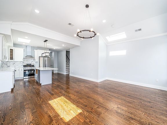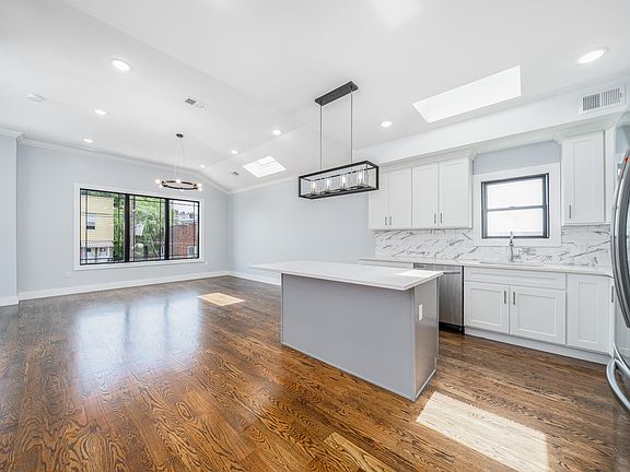Brand new premier construction in the Jersey City Heights located just two blocks to Leonard Gordon Park and two blocks from JFK Blvd bus lines to NYC. This spacious PH boasts 1300 interior sq ft of luxury plus private roof top terrace. Spacious great room with vaulted ceilings and several skylights. Across the home enjoy real hardwood floors, dark oil rubbed bronze hardware, recessed lighting, central air conditioning, and custom design lighting fixtures. Superior sound attenuation via Anderson 400 Series windows and double 5/8” sheetrock. Kitchen features contrast gray center island, white quartz countertops and shaker cabinets, gas range, and marbled backsplash. In unit laundry room with LG side by side front loading washer and dryer. Master suite offers walk in closet complete with organization unit, private terrace with sliding glass doors, master bath double sink, full body shower system, and LED backlit mirror. Home includes parking and 5 yr tax abatement.