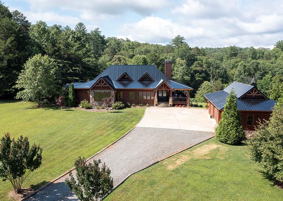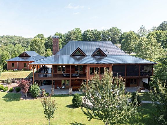 Spectacular Creekfront Estate on over 4 acres in Gated Community! Welcome to 347 Major Ridge Drive, a rare and exquisite custom home built by luxury builder, John Soave. Located in the Goleega Subdivision, offering over 4 private acres with ownership of both sides of Fightingtown Creek--a truly unique and serene mountain setting. This spacious, thoughtfully designed home features 4 en-suite bedrooms: 2 on the main level, including the luxurious primary suite with spa-inspired bath and his-and-her walk-in closets and 2 on the terrace level, offering privacy and comfort for family or guests. a convenient half bath on the main level serves guests with ease The heart of the home is a chef's kitchen that flows into a large dining area and a gorgeous great room with a dramatic stacked stone fireplace. Just off the main living space is a cozy sitting room, ideal for quiet reading or peaceful conversation. Unparalleled outdoor living includes: -wraparound upper porch with outdoor stone fireplace -spacious screened-in porch-perfect for year-round outdoor dining -terrace-level patio with bar, hot tub and lounging space -two firepit areas, including one creekside -fishing deck, wading area, and natural waterfront beauty The terrace level also includes a large den for games or media and a massive unfinished area with potential for a gym, bunk room or additional living space. A detached garage features two finished rooms, ideal for a home office studio, or hobby room. Located just minutes from downtown Blue Ridge and McCaysville, this home offers a one-of-a-kind chance to live on a spectacular creekfront Estate . This home is meticulously cared for and is immaculate both inside and out. Schedule your showing today!
