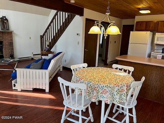 Escape to Your Cozy Chalet Retreat in The Hideout..Nestled within the tranquil beauty of The Hideout, this charming 3-bedroom, 2-bathroom chalet beckons you to embrace the serenity of mountain living. Surrounded by lush greenery and embraced by the crisp mountain air, this haven offers the perfect blend of rustic charm and modern comfort.Step inside to discover a warm and inviting ambiance, highlighted by the centerpiece of the living space - a wood-burning brick fireplace. Imagine curling up on a chilly evening, enveloped in the crackling warmth of the fire as you sip on your favorite beverage and unwind after a day of adventure.The open-concept layout seamlessly connects the living area to the well-appointed kitchen, creating an ideal space for entertaining family and friends. Whip up delicious meals with ease in the fully-equipped kitchen, complete with ample counter space, and plenty of storage for all your culinary essentials.As you ascend the staircase, you'll be greeted by a cozy loft area, perfect for use as a home office, reading nook, or additional sleeping quarters for guests. Whether you're seeking solitude or hosting loved ones, this versatile space offers endless possibilities to suit your lifestyle.Step outside onto the sun/bbq deck, where wooded views of the surrounding landscape await. Sip your morning coffee or gather with loved ones for an alfresco dinner under the stars.The Hideout community itself is a treasure trove of amenities, providing residents with access to a wealth of recreational activities year-round. From swimming and boating in the summer to skiing and snowltubing in the winter, there's always something exciting to do just steps from your doorstep.With its idyllic location, charming features, and abundance of amenities, this 3-bedroom, 2-bathroom chalet in The Hideout offers the perfect retreat for those seeking a blend of tranquility and adventure. Don't miss your chance to make this mountain oasis your own.