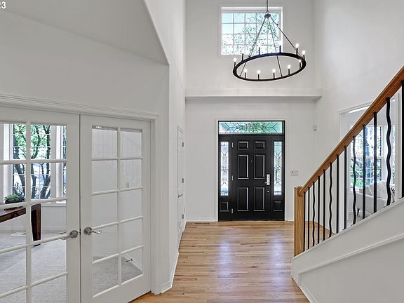 Elegant yet sophisticated traditional in desirable Taylor Crest. Over 5,600 Sq. Ft. on .26 acre lot with 5 bedrooms + Den + Bonus + Rec Room, 4.5 Bathrooms. Stylish updates including interior/exterior paint, refinished hardwood floors, designer lighting and kitchen/fireplace tile. Stunning two story entry leads into the light & bright formal living room with contemporary herringbone fireplace tile and dining room with wainscoting, tray ceiling and dramatic chandelier. Oversized kitchen with custom cabinetry, Cloe tile backsplash, granite countertops, Wolf double ovens, 5 Burner Wolf Cooktop, Sub-Zero Refrigerator/Freezer & Miele dishwasher. Spacious primary suite features double walk-in closets, oversized jetted tub, walk-in shower and private deck with hot tub. Gorgeous covered deck leads directly into the backyard with synthetic turf lawn and sport court. Oversized 3 Car Garage. Located on close-in, quiet dead end street minutes to Amaterra Winery, Downtown Portland, Hwy 217 & 26.