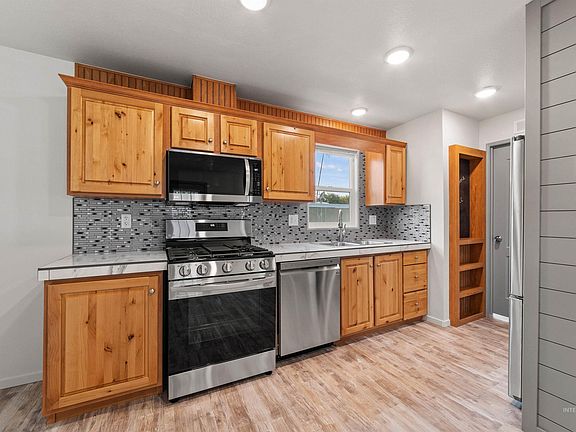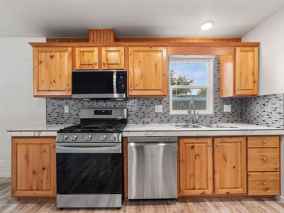 Spectacular completely renovated manufactured home in desirable West Meadows Estates 55+ gated community. Come enjoy all the thoughtful design choices this pristine home has to offer. The gorgeous kitchen has countertops that never have to be sealed & all new LG appliances. The large stainless steel refrigerator has an ice maker & water line. The gas range is equipped with a griddle plate accessory and an air fryer right in the oven so you can cook healthier, crispier versions of your favorite foods. Both bathrooms include a variety of luxurious features from a magnetic handheld shower head to a spacious tile shower with benches. New flooring, LED efficiency lights, interior/exterior paint, new fixtures & new LG washer & dryer. Whole house ventilation in addition to the AC unit. The large lot boasts a full sprinkler system, long extended carport, & a 10x10 concrete pad to add a shed. Peaceful & friendly community has fun activities, clubhouse, dog park, & rentable RV parking. Close to all Boise has to offer.