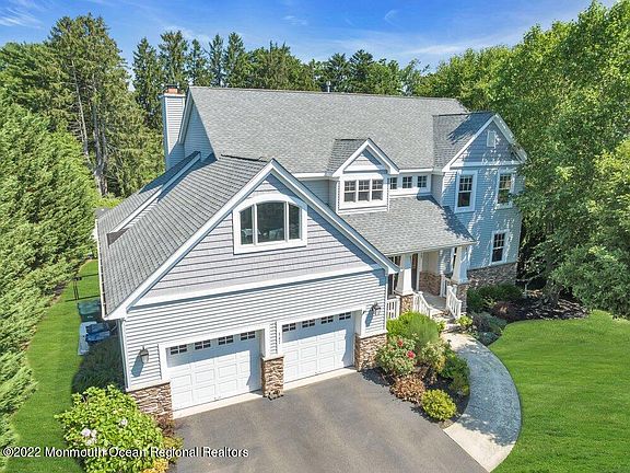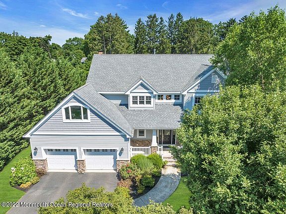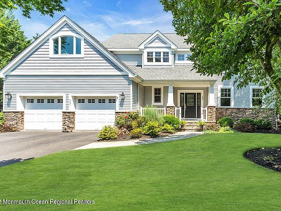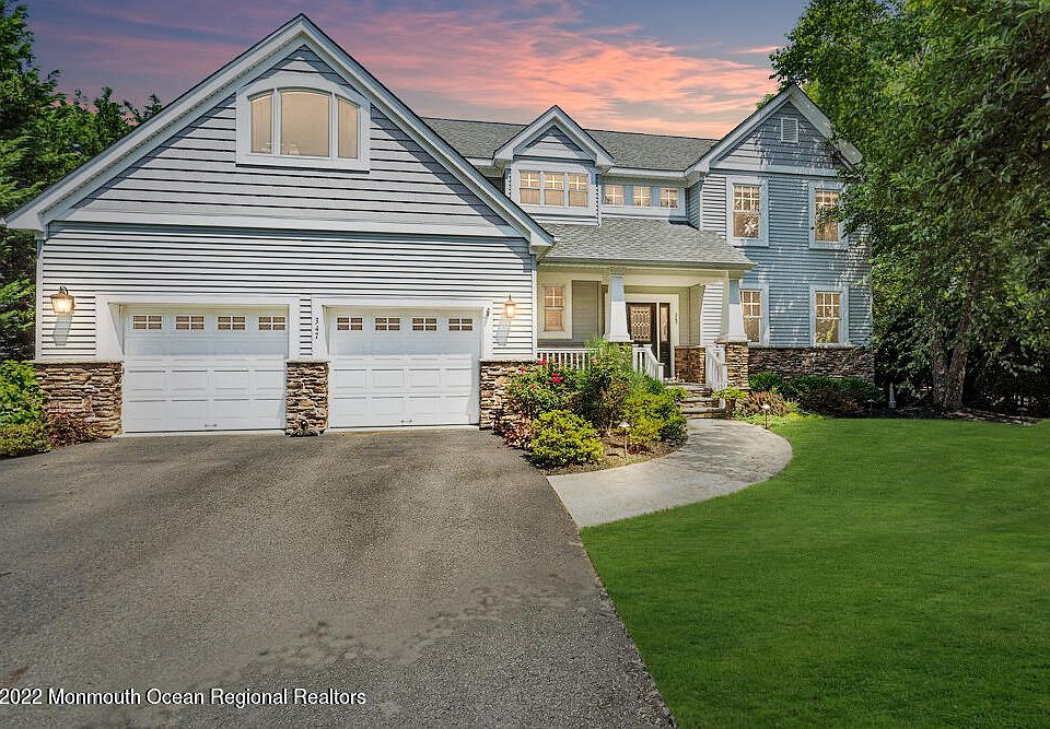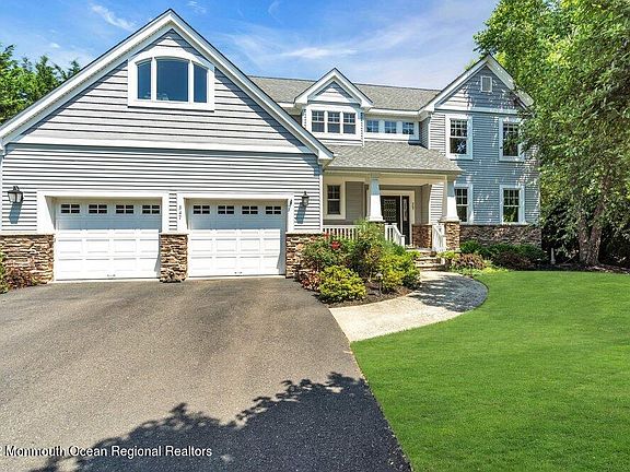 YOUR DREAM HOME AWAITS! Sitting directly across from the picturesque Shark River Golf Course the dramatic 2 story foyer welcomes you into the open floor plan. Formal dining room with decorative molding flows into the kitchen for ease in entertaining. Expansive kitchen with elegant cabinetry, center island, wet bar and wine fridge overlook the spacious family room with red oak hardwood flooring and gas fireplace. Dreamlike master suite with fireplace, large walk in closet and ensuite bath, 3 additional bedrooms with ample closet space and tucked away office complete the upper level. Situated on over 1/2 an acre with a sprawling ultra-private backyard oasis features a hot tub, in ground heated salt water pool, stunning outdoor pavilion with vaulted cedar plank ceiling and classic wood burning fireplace make this the ideal space for entertaining or leisure. Just minutes to downtown Asbury Park and Jersey Shore Beaches!