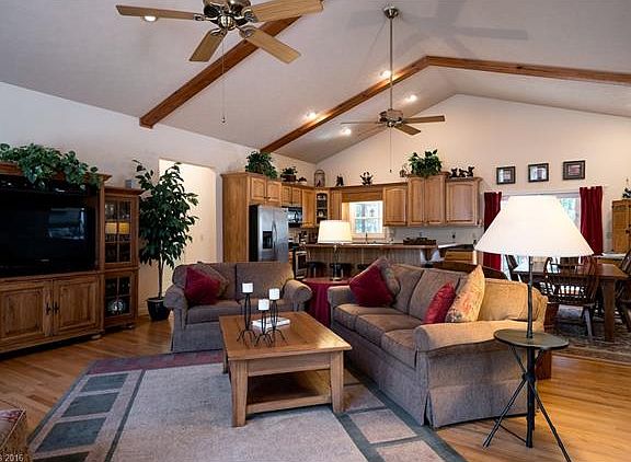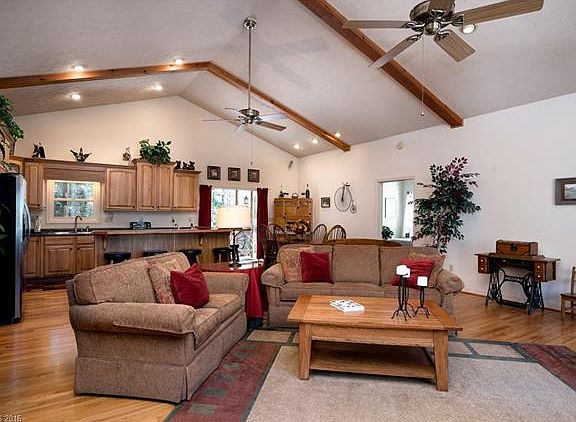 Beautiful home amid 6 wooded acres with 230' frontage on Cedar Creek, including a beach and waterfall! Split bedroom plan with wonderfully open great room (gas fpl)/kitchen/dining with cathedral ceiling on main level. Basement has spacious family room/den and rec room, plus room to use for sewing/crafting/office and third full bath. Deck wraps 3 sides, with screened room off dining room, and access from master. Overlook deck in back yard for enjoying sights and sounds of creek below. Paradise!