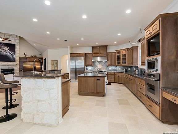 Exquisite 23+ acre equestrian property with Agricultural Tax Exemption in Cordillera Ranch, the Texas Hill Country's most exclusive country club community. The serene, park-like setting features dozens of mature Live Oak and Elm trees and scenic grazing pastures on one of the largest parcels in Cordillera. This unique property includes a 5,904-sf home with 4 bedrooms and 5 and 1/2 bathrooms, a covered patio and summer kitchen overlooking the pool, a Koi pond, 3 car garage and game room, and 2 automated gate entrances with one serving the main house and the other serving the barn. The state-of-the art equestrian amenities include 6 stalls with Stable Comfort mats, 5 turnouts, a 6-horse programmable Eurociser walker, indoor wash rack, industrial fans and fly spray system, 3/4 bath, tack room with pivot door, covered trailer storage and a 12 acre fenced pasture that could easily be cross-fenced. Two wells and two septic systems serve the property. Come see one of the best equestrian properties in Texas Hill Country.
