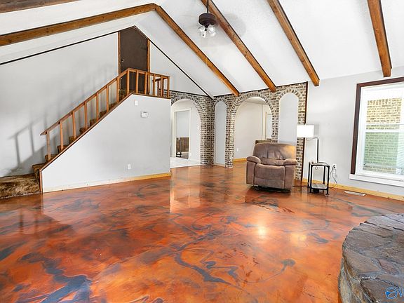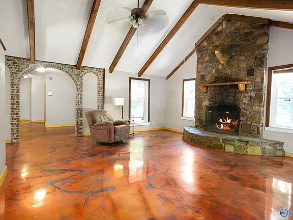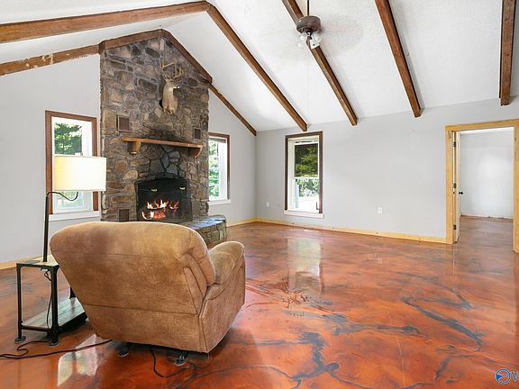 Come home to your own private getaway on Brindlee Mountain! Nestled between the forests and two fenced-in pastures, this home also comes with a chicken coop, a storage shed, a fenced in doghouse, and a hot tub. Take a short hike down the mountainside to your very own stream, and wind down your day in front of the wood-burning fireplace. Rustic renovations with poured acrylic flooring throughout make it easy to call this cozy home "home". Easy commute to Huntsville! Home to be sold AS-IS. Option to purchase an additional 2 acres. Property will be surveyed before closing.