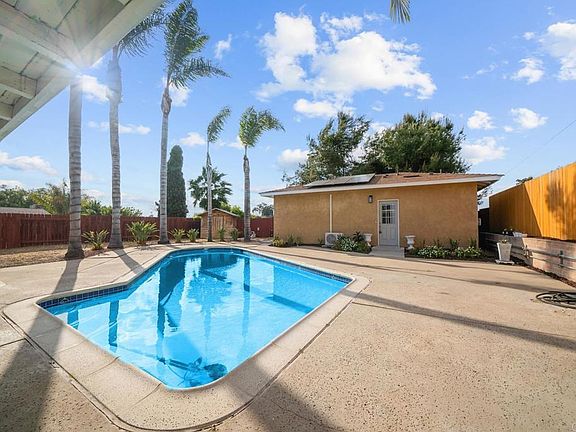 Brand new 600 Sq Ft Detached 1 Bedroom & 1 Bath ADU accents the Gorgeous 3 bedroom & 2.5 bath main house! Front door greets you with a light & bright open floorplan with modern design and finishes! Kitchen opens up to the family room and offers a large island w barstool seating, white shaker cabinets, SS Appliances & nook eating area! Separate living room area w fireplace that opens up to your backyard covered patio seating area! Backyard offers tropical pool, mature landscaping & a detached ADU! The ADU offers paid solar system, separate entrance, full 1 bedroom and 1 full bath with an open design! ADU is perfect for extended family or collect rental income to help pay the mortgage! Large driveway offers room for RV/Boat potential! This home is waiting for you to call it home!