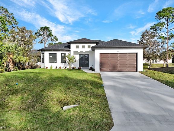 New Construction! Be the first one to live in this beautiful home with an open floor plan. Stunning 3 bedroom, 2 bath + den/flex room property boasts a spacious interior with plenty of natural light. Construction in concrete blocks, automatic garage door, washer & dryer. Kitchen with wood cabinets, built-in sinks, quartz countertop, stainless steel appliances. Bathroom vanity with mirrors, shower with ceramic coating and mosaic details. 24x24 Ceramic / porcelain tile floors in all internal areas, textured walls and ceilings. Impact Windows. Lighting fixtures throughout the property, ceiling fans. 1 year structural warranty. Located in a center Lehigh Acres Area near to Restaurants, Shopping, and other commercial areas, minutes to Fort Myers and Beaches, RSW Airport, and close to Walmart. Just 10 minutes away of I-75. One year construction guarantee. Take advantage of this great opportunity to reduce your out-of-pocket expenses.