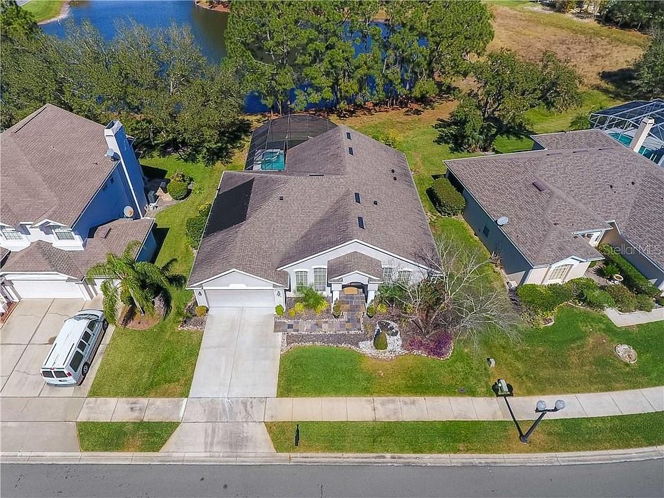 Welcome to this amazing 4 bedroom 3 bath water view home in Lake Mary. Centrally located in the Manderley subdivision on a picturesque pond. This home offers many upscale features such as Plantation Shutters throughout, exotic granite, custom drapes, vaulted ceilings in almost every room, art niches, and a covered patio. Upon entering the double doors, you're greeted by a dining room and living room. Perfect for formal gatherings or used as an office/ bonus room. Follow the tile floors into the kitchen and family room with views to the sparkling pool and serene pond. The light and bright kitchen has been updated with granite counters, stainless steel appliances, breakfast bar, and a center island. The 42 inch cabinets and tons of counter top space make this a cook's dream! The sliding glass doors open to the covered patio, solar heated pool with spa, and private pond views. The pool was just resurfaced and the patio was freshly painted. The master is located in the back of the home with an attached ensuite, double sinks, a soaking tub, and a huge shower. The master closet is large enough for Him and Her! The secondary bedrooms are generously sized. Two secondary baths are updated with granite, new sinks, and fixtures. New roof in December 2013. New driveway installed in 2017. This home is move in ready! Make your appointment today.