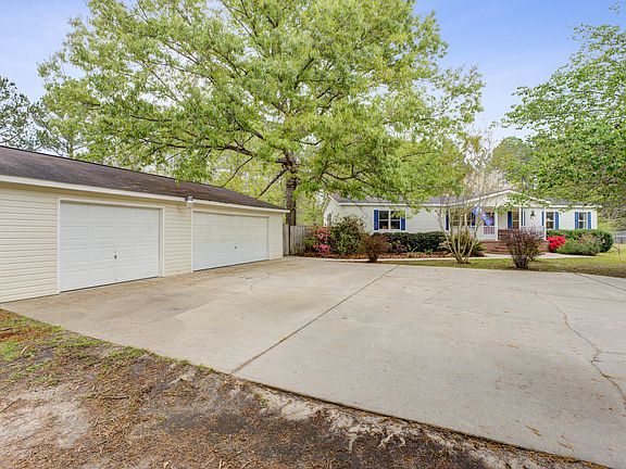 Over 2 ACRES of land with a Beautiful home at end of Cul-De-Sac JUST 20 MINUTES FROM MONCKS CORNER!! If you are looking for a wonderful property on plenty of land with 3 CAR GARAGE, 1 CARPORT, and All the space you want this is for you!!! As you drive up to the home you will love the surrounding wooded areas. This home features immaculate curb appeal with its rounded brick stairs, brick foundation and the welcoming front porch and entry! Once inside enjoy vaulted ceilings, a modern open floor plan and a sizeable sunroom! This home has been upgraded with stainless steel appliances, filtration system and beautiful flooring throughout! There is a 3 CAR garage as well as a shed for your gardening equipment. There are three bedrooms with the large Primary Bedroom featuring a walk-in closet,en-suite bathroom and seating area! This peaceful country home is what you have been looking for- Book your appointment today!