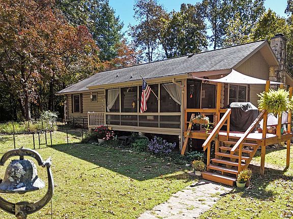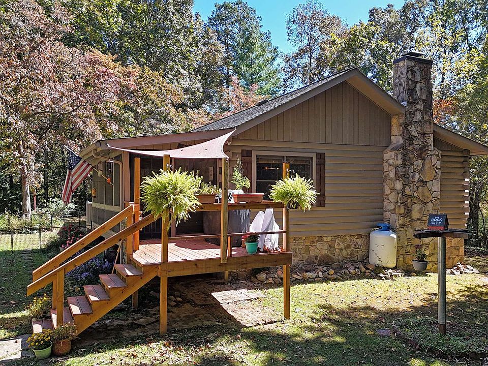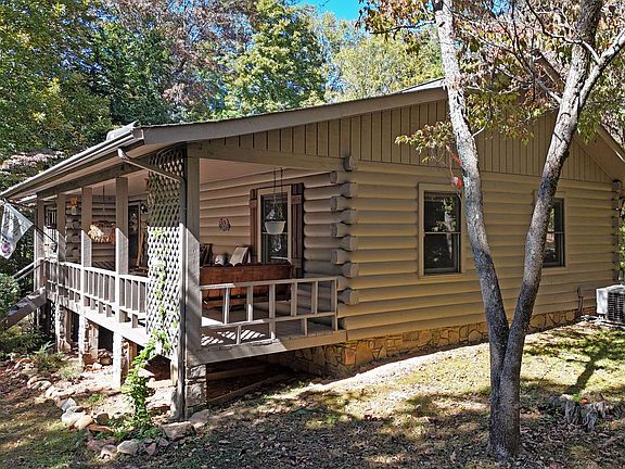 Classic Log Cabin minutes from everything! Kitchen totally redone with refinished cabinets and New Black/Stainless Appliances in 2021-2022, including Refrigerator, Microwave and Gas Range. Plus,a Walk in Pantry and an Island. Wooden Beamed Ceiling with Rock fireplace surround and Hearth with Wood Stove makes this home warm and cozy. A good mix of sheetrock and wood adorns the open plan interior. 3 good sized bedrooms with 1 full and 1 half baths. Firepit area outdoors for sharing stories and smores. Detached garage features 2 parking spaces, a workshop, storage and laundry room. Furnishings available on separate bill of sale. Access the Nottely River via neighborhood trails. What a great place to make new memories in your Blairsville Mountain Cabin!