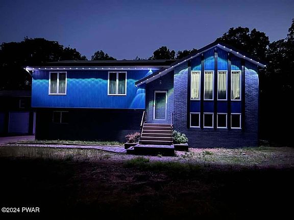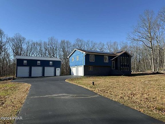 NO COMMUNITY! RENOVATED! PRIVATE LOCATION! Exquisite Raised Ranch has an Open Floor Plan, spacious modern kitchen, stainless steel appliances. 3-bedroom, 2 bath home sits on 2 acres. This home also features a 5-car garage (3 detached), finished walkout basement with a family room and two bonus rooms, central air/heating, upper-level laundry. Large back deck that overlooks 475 acres of forest. Bonus feature: Solar Panels to help assist with the electric bills and reduce the carbon footprint. Short drive to Delaware River, Ski Big Bear, Lake Wallenpaupack, dining and shopping.
