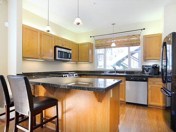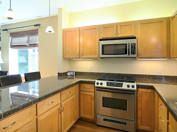 Private ground floor end unit near Oakway Shopping Center! Contemporary kitchen w/ granite counters, stainless steel appliances, breakfast bar & pantry. Master suite w/ walk-in shower & walk-in closet w/ built-in organizers. Open living room w/ bamboo floors & attractive gas fireplace. Delightful covered patio. Detached single-car garage w/ shelving & storage loft. Conveniently located near great shopping and restaurants.