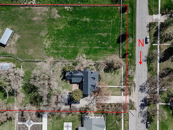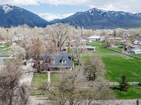 Step into history with this charming 2 story home built in 1943 on a large 1.88 acre lot. The large living room welcomes you with a cozy fireplace, while the main level home office boasts huge south-facing windows, allowing plenty of natural light. With 6 bedrooms and 3.5 bathrooms, this home exudes character at every turn. The unfinished basement is perfect for a workshop, with convenient access to the back patio area. Outside is a detached oversized 2-car garage, 1-car carport, and ample parking. Bring your horses to enjoy the barn, run-in pen, and fenced pasture, all serviced by pressurized irrigation water. Mature trees, including an apple tree, provide shade for the back patio and vegetable garden. Don't miss the main level primary bedroom with its own fireplace, offering comfort and style. This home is a true gem with timeless appeal. Buyer to verify all information.