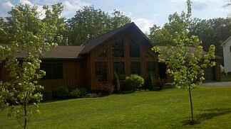 This is a beautiful modern home with an open floor plan. Has engineered hardwood floors through out hickory kitchen with stainless steal appliances and has 3 bedrooms master bathroom, stainless steal appliances in kitchen, large vinyl deck, and central air. It also has a 28x30 attached garage and partially finish basement with double doors going outside.
