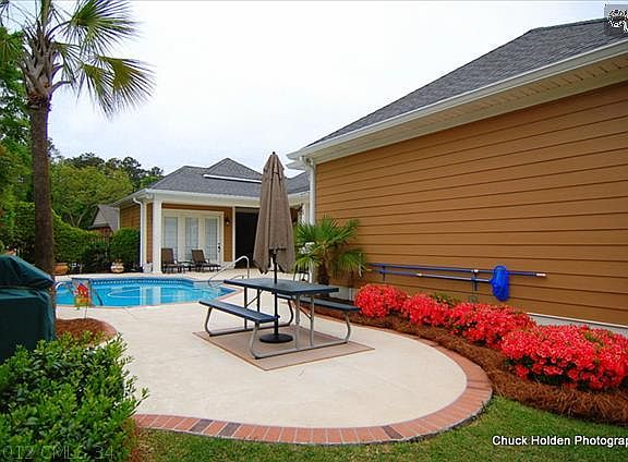 The open air entry way welcomes you into the homes private courtyard complete with inground pool, manicured lawn, & exquisite landscaping. The main home boasts french doors that open onto the courtyard & has a wow factor all its own. Home owners originally purchased this custom built home 75% complete & spared no expense spending over 120K to make it top of the line throughout. The finishings include hand scraped hardwoods, heavy molding, custom cabinetry, surround sound & custom draperies. The home also offers a large bonus room, home office, mudroom and best of all, an in-law suite separate from the home. The in-law suite has its own french doors opening onto the patio along w/ full bath & walk in closet. Also includes deeded boat slip.