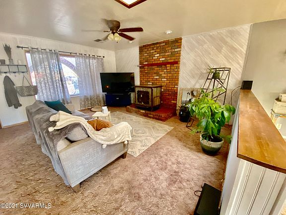 A 2176sf, 4 bed 2 bath ranch style home in the quiet & pristine Jordan Meadows Estates of Camp Verde. 2.46 Acres of irrigated land w/ soft green grass & incredible views of the surrounding mountains and Verde River green belt. Open floor plan kitchen and living room w/ beautiful hickory cabinets and a wood burning stove. Giant shade trees keep the home cool in the summer allowing you to enjoy the lovely views off the back patio. Big carport and hobby shop/barn. Lots of room to grow with expansive pasture land, ready for whatever your heart desires. Plenty of room for all your toys, atv's, Rv, 5 horses, dogs. Completely fenced in with a gated entrance. This is a great opportunity to own large irrigated land w/ a well built home and endless potential.