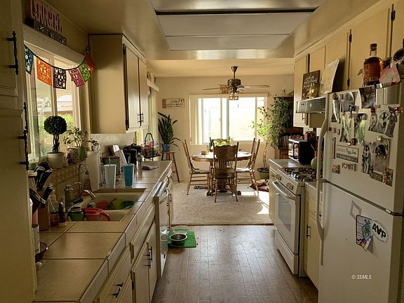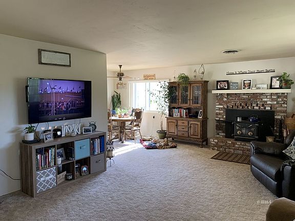 The Seller of this 1,320 sq ft 3 Bedroom 2 Bathroom Home tells me that enjoying a cup of coffee on the quiet front porch with the occasional passing by of the friendly neighbors is one of the most enjoyable pass times! Plenty of space in the Living room that flows to the Dining area. The Dining area has a sliding glass door leading to the back porch! Tasteful tile counter tops in the functionable Kitchen. Right off the Kitchen is the Laundry area with a door to the backyard. Every room flows nicely here! Each Bedroom has mirrored closet doors. Master Bedroom has its own Master Bathroom. There is a water softener on the home. Water is inexpensive with this home being on a shared well! Seller is putting together a well agreement. In the backyard there is a wood shed and a concrete pad wired for 220 and is ready for a jacuzzi to be placed! There is a also a metal shed in the backyard for more storage. Also in the backyard next to the insulated 2 Car Garage is a Carport for the boat or other toys! The Lot size is generous at 16,552 sq ft and zoned for horses! Enjoy the Mountain Views and the feeling of seclusion on this peaceful property!
