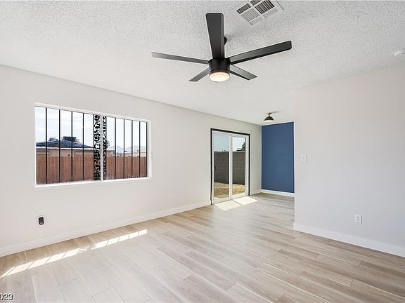 and minutes from the Nellis AFB & the casinos, entertainment and shopping of downtown Las Vegas! Home has attached carport, gorgeous interior finishes, ceiling fans, washer & dryer hook ups, painted accent walls, laminate wood flooring and plush carpet throughout. Customary kitchen with white shaker cabinets, stainless-steel appliance, gas stovetop and garden view. Bathrooms have been fully upgraded with custom tiled showers w/built in niche, new vanities with framed mirrors, hardware and lighting.