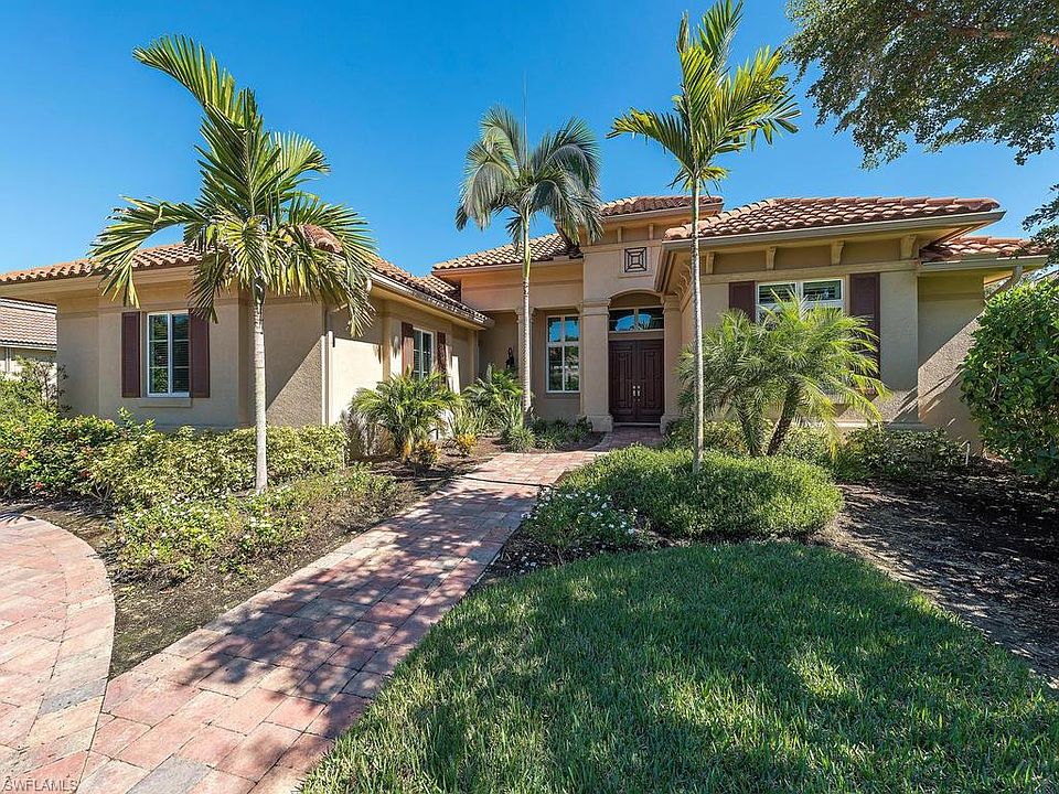 FORMER WYMAN AND STOKES MODEL OFFERED TURNKEY FURNISHED! A wide open floor plan filled with natural light, entertainer's kitchen, wrap around lanai and wide open golf course and lake views, this is truly picture perfect! The options, upgrades and details make this an impressive home! The island kitchen offers a pantry, gas cooking, custom cabinetry, breakfast bar, granite counters and stainless appliances. The lanai has an unobstructed view by design (a must see), stunning pool and spa, plenty of space both covered and for lounge chairs, lanai access ½ bath and full outdoor kitchen and entertaining area. Other features include all ensuite bathrooms, crown molding, indirect lighting, full laundry room, tray ceilings, tile throughout with carpet in the bedrooms, glass walk in shower in the master, plantation shutters, walk in closets, gas pool and water heater and a 3½ space climate controlled garage with finished floor. Verandah offers 2 18-hole championship golf courses, tennis, walking trails, fitness center, private dog park and every other amenity you'd expect to find at a top club! The combination of this property and this community is simply amazing!
