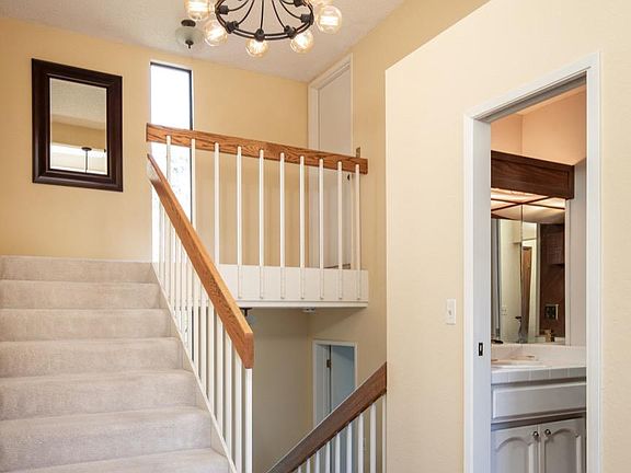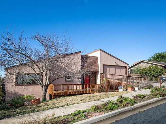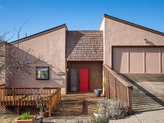Over the Treetops - Located on the southside of Edgefield Place looking westward over a lush forest of treetops, sits this 4-level, light-splashed home. Ideally located in Carmels High Meadows, it has vaulted ceilings, sky lights, clerestory windows and abundant south-facing windows and sliding glass doors that brighten the house from top to bottom. In the 2,400+ sq. ft. of living space are four bedrooms, 2 full baths, a well-located powder room and a huge two-car garage. Welcoming Saltillo tile entry. Tile continues into kitchen and breakfast areas. Large living room with sliding doors to deck, a pass-through to the kitchen and a wood-burning Franklin Stove sitting on a stone hearth. Large master bedroom has, in addition to the master bath, a separate dressing area with a lengthy, tiled dressing table with sink. Sliding glass door opens to a deck. Lots of storage and a basement area with living potential. The house is a remodel candidate and awaits your creative touches.