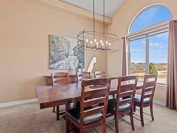 VIEWS...VIEWS...VIEWS!!! Nestled on 5 picturesque acres in charming Sedalia, Colorado, this expansive 5-bedroom, 4-bathroom custom home is a true gem. With over 5,000 square feet of living space and a main-floor office, it offers ample room for both work and relaxation. The property boasts stunning, unobstructed views of rolling hills and mountains that stretch as far as the eye can see. The brand-new roof, hot water heaters and updated appliances ensure that you can move in with peace of mind, and you'll be one of the lucky few to seize this rare opportunity to own just one of 31 homes located throughout 538 acres. Just two other homes have sold on the open market over the last five years!! Step outside onto the huge deck to savor the breathtaking surroundings, perfect for morning coffee or evening gatherings. The basement is an entertainer's dream, complete with a wet bar and a movie theater, making it an ideal space for hosting family and friends. Located just 15 minutes from the thriving community of Castle Rock, and a mere 25 minutes to the Denver Tech Center, you'll find the perfect blend of tranquility and convenience. Commuting to downtown Denver is a breeze, with a 40-minute drive. The property also includes a spacious 4-car garage, ensuring plenty of storage for your vehicles and outdoor gear. Large windows throughout the home flood the space with natural light and provide constant access to the mesmerizing views. This property is a rare find, offering the best of Colorado living – space, comfort, and breathtaking scenery, all within easy reach of both urban amenities and the great outdoors. Don't miss your chance to make this stunning Sedalia retreat your own!!