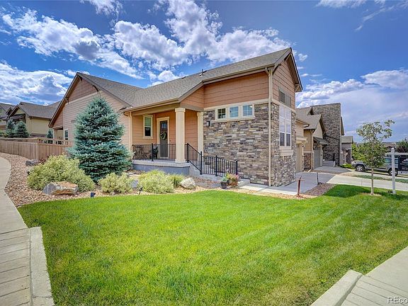 Beautiful ranch home on a corner lot with a larger yard than most in the community. Main-level living at its best, with 10-foot ceilings this home has a grand kitchen and great room that is perfect for entertaining. The kitchen cabinets go sky-high with the high ceilings, offering tons of kitchen storage. With a private backyard that is larger than any other interior lot, you have plenty of space for outdoor fun and relaxation. There are 3 bedrooms and 3 full bathrooms on the main floor. All the benefits of a corner lot but the snow removal and front yard maintenance are for the HOA to care for. You are within walking distance of The Meadows Town Center with restaurants, breweries and shopping, as well as a short drive to the Outlets at Castle Rock and Downtown Castle Rock. Very well-maintained home with new roof, wood floors, and newer carpet. Huge, full basement with large egress windows is ready for a new homeowner to design.