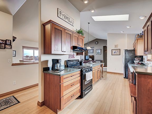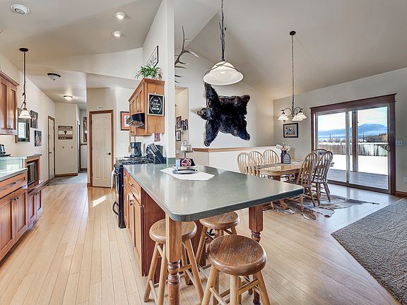 A rare opportunity to own a home in the desirable Hayfield Estates Subdivision! This Thoughtfully designed four bedroom, two and a half bath home offers ample natural light & airy ambiance creating an inviting atmosphere. The Open floor plan makes entertaining easy, with easy access to the covered deck and fire pit that open up to unobstructed mountain views. The master suite includes a tile walk in shower, access to the back deck and a large walk in closet. The opposite wing of the main level has a unique jack and jill bathroom that is functional and extremely convenient for multiply use. The unfinished basement offers opportunity to finish it as the buyer desires, with one completed bedroom and plumbing in place for an additional bathroom. This home is situated on an acre lot, just minutes from town and offers privacy to enjoy Montana's picturesque summer skies. The beautiful landscaping includes underground sprinklers & fencing for a dog run.