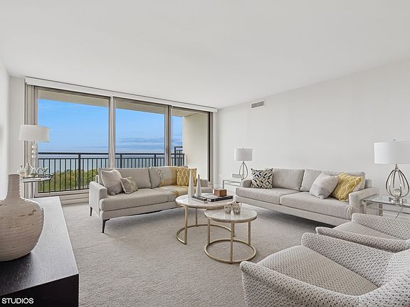 Perched on a high floor in a super cool mid-century high-rise is this unbelievably spacious residence with spectacular mesmerizing views of the lake, park, city and beyond. A renovated chef's kitchen opens to a separate dining room and then to an enormous sunken living room w/private terrace overlooking the park and lake. Two oversized bedrooms include a lavish primary suite, its own terrace, loads of closet space, and a renovated bath w/double bowl vanity and large walk-in shower. A third terrace is off the third bedroom. Watch BOTH spectacular sunrises and sunsets from inside or outside this fabulous space. In-unit washer-dryer. This boutique building has a rooftop pool, exercise room, and garage parking. A+ location with everything out your door - transportation, lakefront paths, shopping and cafes on Broadway. This is a winner!