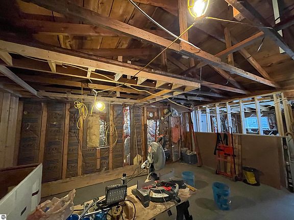 Down to the bare studs - Currently framed for 3 bedroom, 2 bath home. 1 car attached garage, setting on approximately 1.58 acres. No current working septic tank or field, Slab foundation, natural gas heat available at road. All building materials currently in main building on property will be included in sale. Property being sold AS IS.