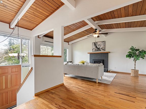 Pride of Ownership Shows in This Private South Eugene Home w/ Mid-Mod Vibes & Incredible Garden Oasis! After half a century of loving this home, the sellers have downsized and are ready for a new owner to enjoy this special property as much as they have. You'll love the vaulted wood-beam ceilings, hardwood floors, 2 gas fireplaces and great separation of space that lends itself perfectly to multi-generational living. The light-filled main living area offers tranquil views of the front and back garden, not to mention expansive views of the city, while the downstairs family room makes the perfect cozy tv room. Featuring 4 spacious bedrooms (including vaulted primary ensuite w/ views), 3 full bathrooms plus an office w/ closet and the laundry room of your dreams, this home has all the space you'll need. Spend a little time roaming around walking paths of the nearly 1/3 acre yard and you will be mesmerized by the privacy & tranquility. This one-of-a-kind sanctuary offers lush foliage, flowering shrubs, a hidden hot tub gazebo, a covered BBQ area & a convenient tool shed. This is a rare opportunity to own a home in one of Eugene's premier locations! With the feeling of being in your own magical park on a secluded lane that feeds to SEHS but walking distance to Wayne Morse Family Farm, Lafferty Park and Woodfield Station, you really have the best of both worlds.
