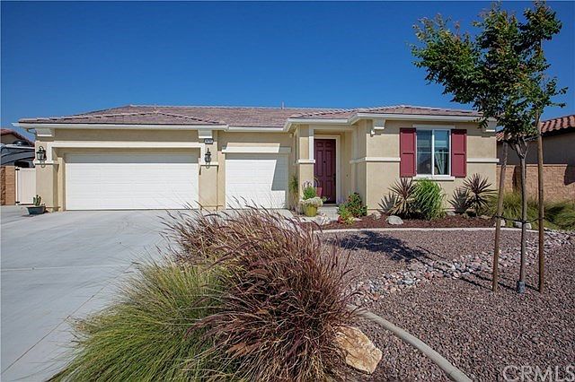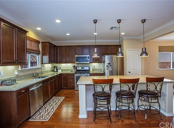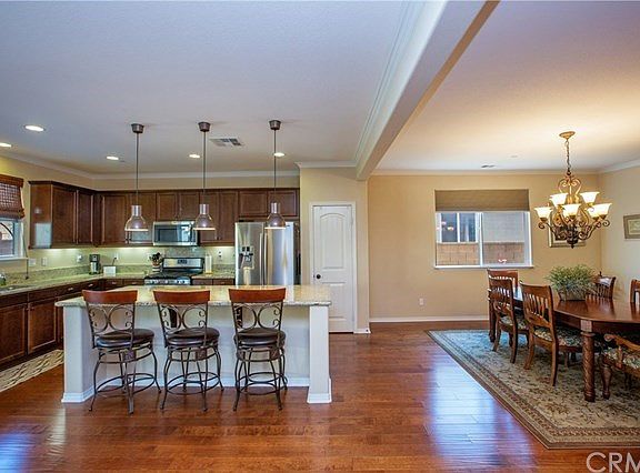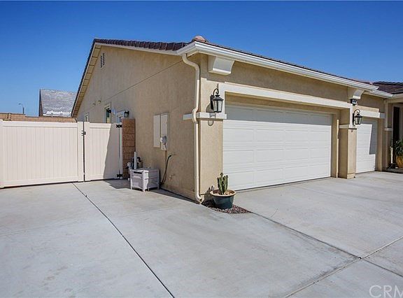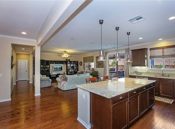 If you are looking for a nearly new single story in turn key condition WITH RV PARKING, then you found it. This wide open floor plan has an expansive great room design with the open concept island kitchen. It has hardwood flooring, granite counter in the kitchen and baths and stainless steel appliances. There are custom window coverings and crown molding throughout. The master bath has an oversized shower and the closet is full of built- ins. The backyard comes with an aluminum patio cover, built in BBQ as well as a jacuzzi and cabana. In addition to RV parking, you have a 3 car garage. Seller is leaving the state so appliances and furnishings are negotiable.