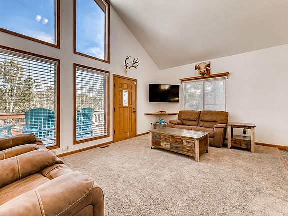 Welcome to this amazing Raised Ranch, quiet valley. Spacious floor plan with unique features. Brand new carpet in selected rooms, Brand New Fence, Brand New Stain, New Electrical Outlets, 14 foot Ceilings , wrap around deck and well clean curb appeal, Jack and Jill bathroom, wood finishes throughout. This gorgeous home also includes a walk out basement, large panoramic window style, Bright open living space, fresh paint and floor to ceiling windows. Lower level has 9ft ceilings and French style crown molding. Flat 1 acre with gorgeous Aspen trees surrounding the home and a convenient shed available for animals Easy access to hwy 285. Don't Miss out! ** Also seller will include a home warranty **