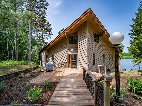 Take in the best sunset views on Bass Lake at this 4 bedroom 3 bath entirely renovated home that boasts 430 ft of sand frontage, and a completely private 5 plus acre wooded lot that that has an abundance of wildlife including an Eagles perch. Great room features a Wilkening stone fireplace, lakeside wall of glass and stunning flooring. Beautiful custom kitchen has maple cabinetry with soft close drawers, Granite countertops, stainless appliances, and a gas range with double ovens that are electric and convection. Finished walkout lower-level features family room with fireplace, bedroom, bathroom and an amazing lakeside bonus space for a shop, gym or studio. Detached garage has 3 levels offering plenty of storage options. Property is right in the heart of Ideal Township so it is minutes from the Whitefish Chain, Crosslake and Pequot Lakes. Bass Lake is in the upper part of the Ossie Chain which offers excellent fishing, water recreation, and has 19 feet of water clarity.