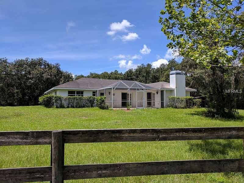 5 wooded acres. Home sits on the back side of the property, very private. Small barn and a fenced dog run or chicken coop. AC less than 2 years old. Open kitchen combined with a family room. Large fireplace in family room. House needs some updating and paint. Entirely tiled throughout. 3 large tortoises, turkeys and deer roam freely on the property.