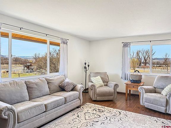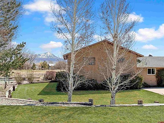 Charming 4-Bedroom Home with Scenic Views, Ample Space, and GREAT STORAGE inside and out. Super SOLID but a little dated! This lovely 4-bedroom, 2.5-bath residence sits on a serene 1.9+ acre lot, complete with excellent senior irrigation water rights sourced from the Farmers Ditch. Enjoy the benefits of an established small hayfield, perfect for agricultural enthusiasts or livestock. GREAT GARDEN POTENTIAL on Hanson Mesa is a fact! This home boasts a thoughtfully designed split-level floor plan, featuring a spacious bonus room downstairs with large egress windows that flood the space with natural light. The recently remodeled kitchen showcases new countertops, flooring, and newer BIG VIEW windows on the main level, creating a fresh and inviting atmosphere. The Brick Fireplace is a focal point in this nice open living, dining and kitchen set up. You'll appreciate the wonderful parking options, with a massive detached garage and SHOP equipped with two oversized overhead garage doors and a traditional size garage door with work shop area and shelves, all set on a sturdy concrete floor. Step outside to experience breathtaking million-dollar VIEWS of the West Elk Mountains, surrounded by mature landscaping. The backyard is a true oasis, featuring a small basketball court area and a large covered patio, perfect for entertaining or relaxing in the fresh air of Western Colorado. Don't miss the opportunity to make this beautiful property your own! Schedule a viewing today and discover the perfect blend of comfort, space, and stunning views. CLOSE TO TOWN with COUNTRY LIVING!