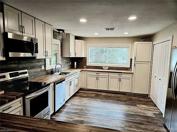 Here is your chance to obtain the nirvana you have been searching for. This 1.14 acre remodeled home is located close to downtown Naples shopping and dining. This gem glimmers with updates in 2021, which include new metal roof, expansive kitchen with stainless steel appliance, cabinets with butcher block countertops, luxury water resistant vinyl flooring throughout, entire home reverse osmosis, washer and dryer, all new bathrooms and storm window and doors to name a few. Open floor plan with screened heated pool and patio. Very private back yard with natural foliage.
