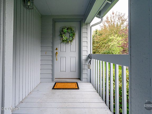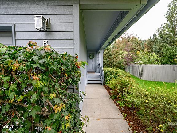 Inviting, bright and sunny well maintained town-home with natural light from the clere story wall of windows. Single family style living without the exterior maintenance allows you to get out and enjoy Alaska. Spacious main floor living with open kitchen, dining, living and powder bath floor-plan. 3/4'' solid oak flooring throughout the main level, wood burning fireplace, and back patio access.Brand new gas range, microwave, SS refrigerator and water heater. All bedrooms on the second floor plus laundry/utility room. Brand new carpet and fresh paint upstairs. Master suite separated by open rail walkway. En-suite provides linen closet and a jetted tub perfect for relaxing, separate water closet and huge walk-in closet! Don't miss the coat nook leading to the large garage. Ideal location close to shopping, dining, Lake Hood and easy commute to airport, midtown and downtown. A must see property!