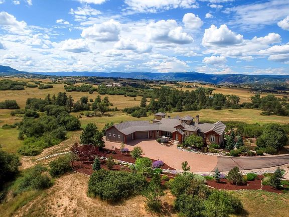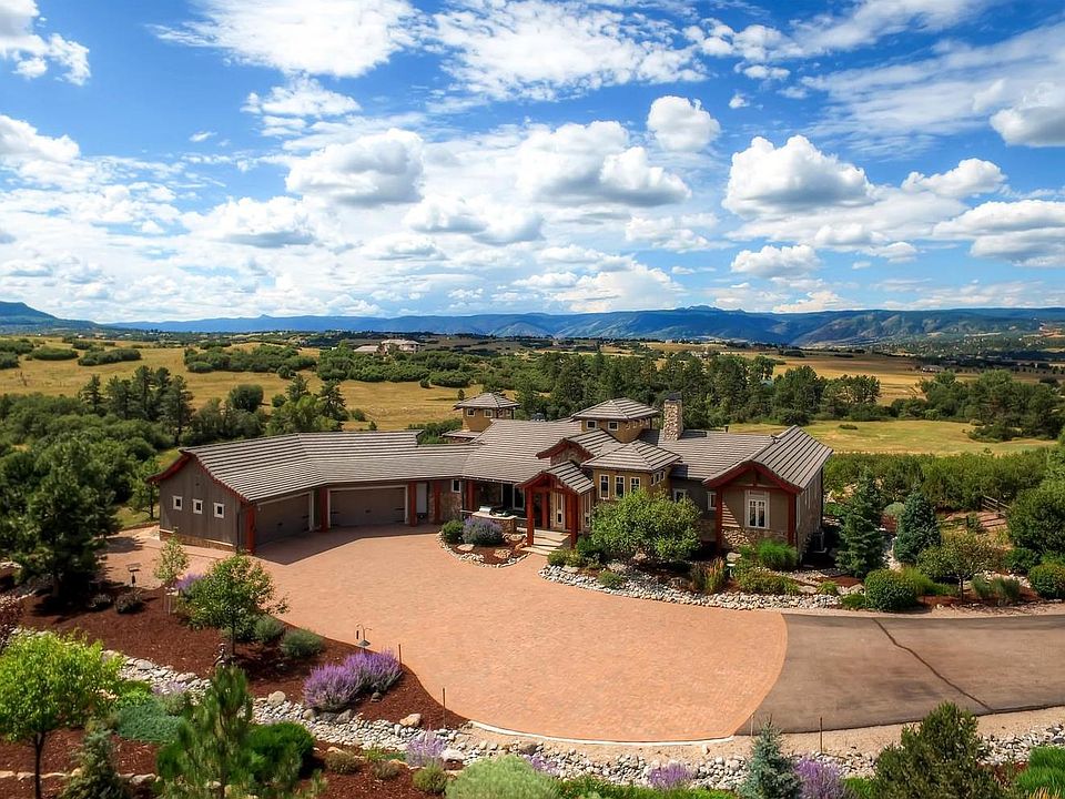 This stunning Bear Canyon Ranch home is masterfully sited on over 30 acres of rolling terrain looking to the majestic Rocky Mountains. Drive through the gated entry and you enter another world as you approach the brick paved and heated motor court and enter the spectacular timber beamed residence. No detail has been spared in this one-of-a-kind home with over the top features throughout. Everywhere you look there is significant architectural detailing to capture your attention. The walkout ranch floor plan is easy to live in with a main floor master, great room plus hearth room on the main level plus a family room with wet bar and wine room, exercise room and four additional bedrooms on the lower level. Outdoor space is well thought out with automatic sun shades on the main level deck overlooking the fenced and maturely landscaped yard with water feature as well as the lower level patio and the east facing terrace. This is truly a home not to be missed.