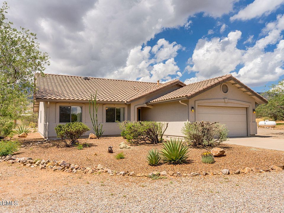 Experience comfort and versatility in this charming 4-bedroom, 2-bathroom home set on 1.7 acres with breathtaking mountain views. The thoughtfully designed floor plan features a primary suite with an adjoining 4th bedroom connected by a convenient pocket door—perfect for a home office, nursery, or hobby space. Enjoy fresh interior and exterior paint and a whole-house water filtration system. Tucked away at the end of a private road, relax in a peaceful, country setting just minutes from all of the amenities Sierra Vista offers. With plenty of room to spread out and stunning natural scenery all around, this property combines privacy, functionality, and serene desert living. Love where you live!