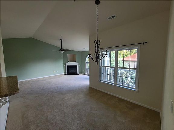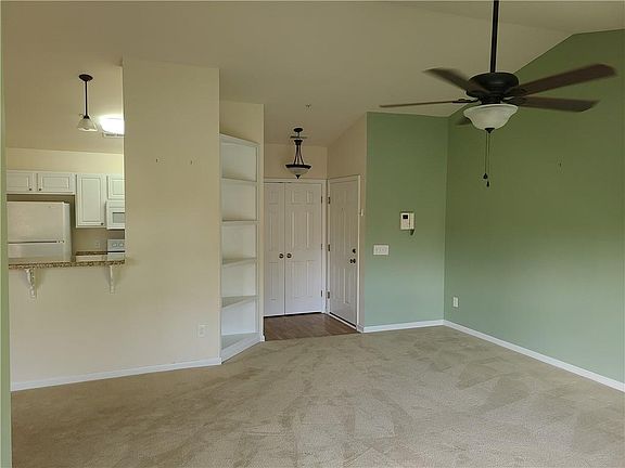 Fantastic unit in the heart of Burlington! Spacious 3rd level unit with beautiful vaulted ceilings. The large living room features a cozy gas log fireplace and upgraded ceiling fan with remote control. The master bedroom is HUGE with a large walk in closet. Front entry intercom with camera for added security. Super convenient location just seconds away from shopping, restaurants and I40/85.