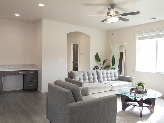 This beautiful home offers modern finishes and a functional layout, all with easy access to major freeways for quick commuting. Inside, enjoy the spacious open-concept living and kitchen area, featuring laminate plank flooring throughout and a cozy gas fireplace. The gourmet kitchen boasts an oversized island, stainless steel appliances, maple cabinetry, and sleek quartz countertops. Upstairs, the main bedroom suite provides a luxurious retreat with dual vanities, quartz countertops, a private water closet, and a spacious walk-in closet. Two additional bedrooms share a convenient Jack-and-Jill bathroom, perfect for privacy and comfort. Additional features include a large laundry room, built-in desk area, and a fully insulated garage with a man door for added convenience. Step outside and relax in the peaceful backyard with a large covered patio, full landscaping, fencing, and no back or side neighbors—ensuring a quiet, private retreat. Don’t miss out on this exceptional home!