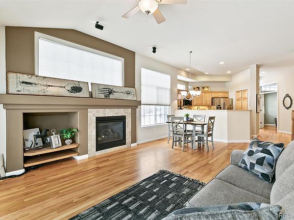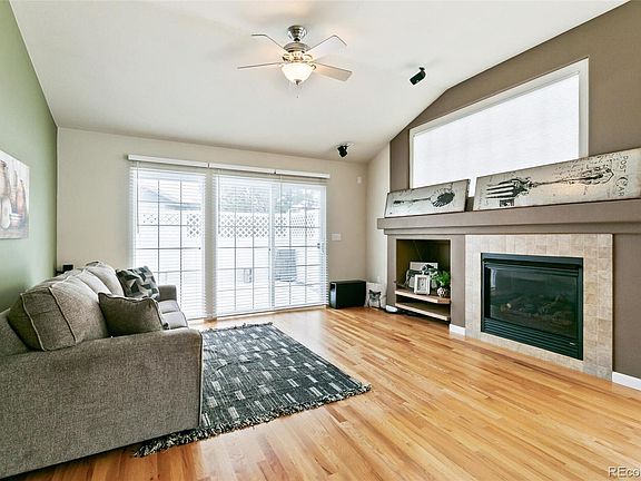 The home boasts lots of natural light, gleaming hardwood floors throughout the main level, vaulted ceilings in the master and living areas, and an open floor plan. The kitchen has a built-in pantry, maple cabinets, newer high-end appliances, and corian counters. The living room has an attached trex deck for those summer barbeques and entertaining, as well as a gas fireplace for those chilly nights. The main floor office is a 3rd bedroom, and could double as a guest room or a den (it does have a closet). The master bedroom has a 5-piece bath, a walk-in closet, and newer carpet. Main floor laundry room with barn doors. The unfinished basement awaits your custom finish. The included surround sound system includes the speakers and subwoofer; all you need is the receiver. The 2-car attached garage has a vertical porchlift that is included with the property for handicap access into the house (it is not currently installed). Handicap width doors on the main level as well. Great location in Broomfield, close to schools and shopping.