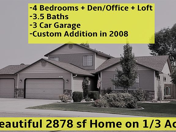Stunning setting on a third of an acre w/your personal park for a backyard! Largest lot in the subdivision. Charming expansive partially covered back deck, separate covered patio w/hot tub & amazing entertaining options inside and out! Beautiful curb appeal. Featuring 4 bed/3.5 bath with main level master, an office plus a loft area. Soaring ceilings with an open layout and massive family room. Front room can be a living room or formal dining, see pictures for virtual staging as living room. Spacious kitchen boasts granite countertops and breakfast bar. Garden area, RV parking,this house has it all! All of this just a stones throw from great schools, Costco, Winco, Walmart, Great restaurants like Gino's, Rudy's, Broken Yoke and more. Great freeway access and parks. What's not to like. See D tab for more info.
